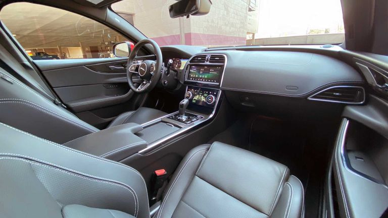 كونه طراز سيدان فاخر، فإن XE يتمتع بالعديد من المميزات التقنية الإمكانات التكنولوجيا الجديرة بالتقدير، ويحظى الطراز من الداخل بشاشة معلومات عملاقة بمنطقة التحكم الوسطى بقياس 10.0 بوصة، في حين تأتي شاشة العدادات داخل بقياس 12.3 بوصة.