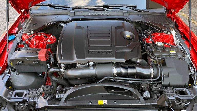 ويعمل طراز جاجوار XE بمحرك ذو اربعة اسطوانا توربيني بسعة 2.0 لتر ينتج قوة 296 حصان، مع عزم دوران 295 لفة/قدم، وقدرة تسارع من صفر حتى سرعة 60 ميل في الساعة خلال 5.4 ثانية.